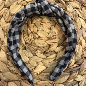 Diadema Nudo Cuadro Vichy Color Negro y Gris
