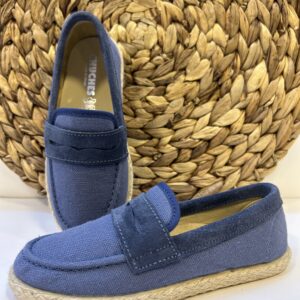 Mocasin Lino Con Piel Azul Jeans Chuches