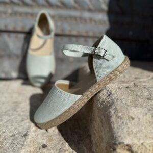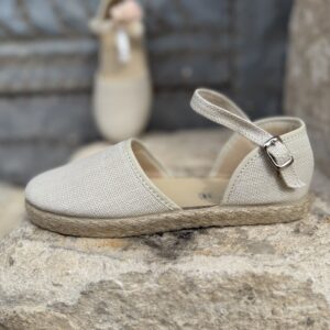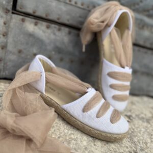 Alpargata De Lino Blanca Con Lazada De Tul Beige