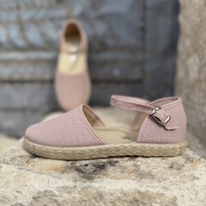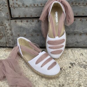 Alpargata De Lino Blanca Con Lazada De Tul Rosa