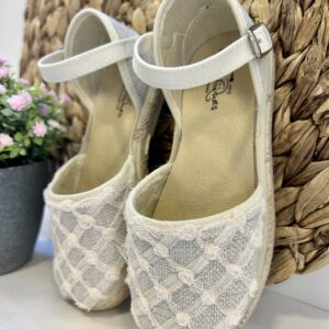 Preciosas bailarinas de lino con cintas de tul de la firma Española Chuches perfectas para ceremonia (comunión, arras, invitada…etc). Un diseño elegante que seguro que