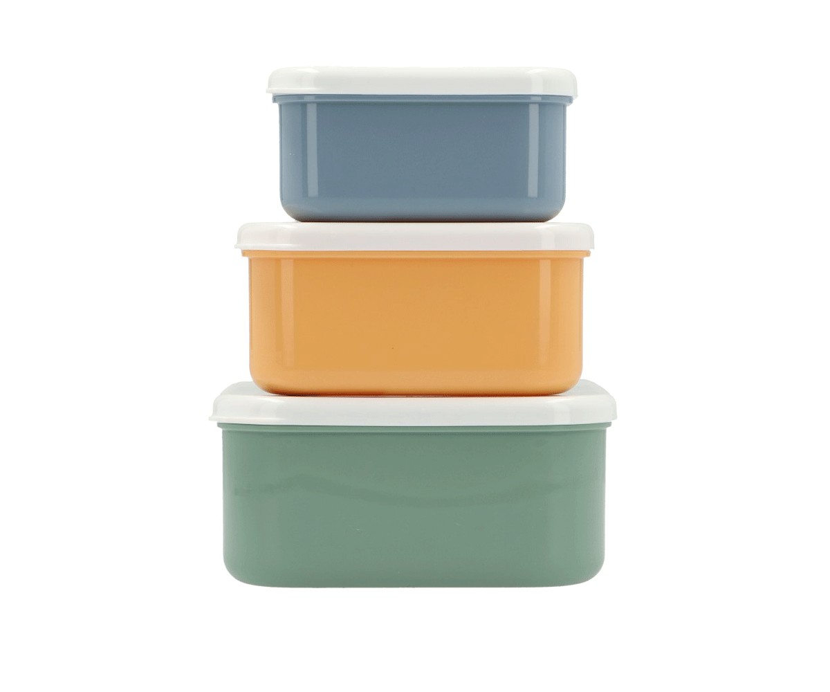 Cada cajita tiene un tamaño diferente para adaptarse a todo tipo de snacks o comidas, y al guardarse una dentro de otra, ocupan muy poco espacio al almacenarlas. ¡Un imprescindible para las mochilas escolares!