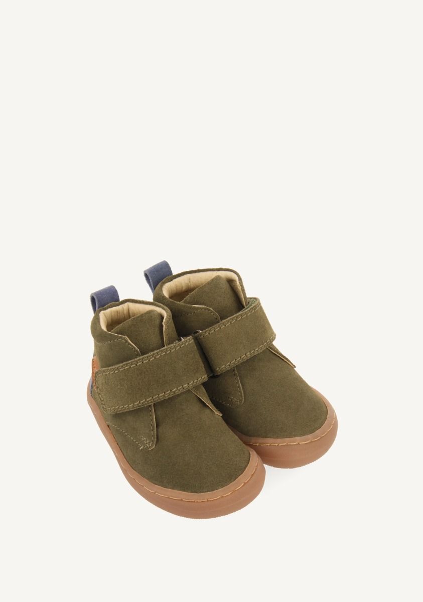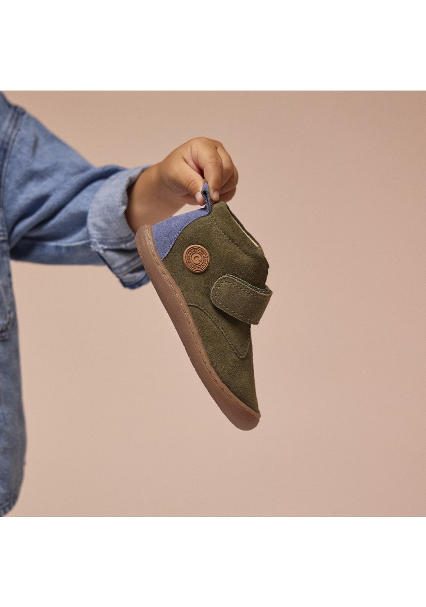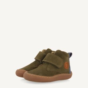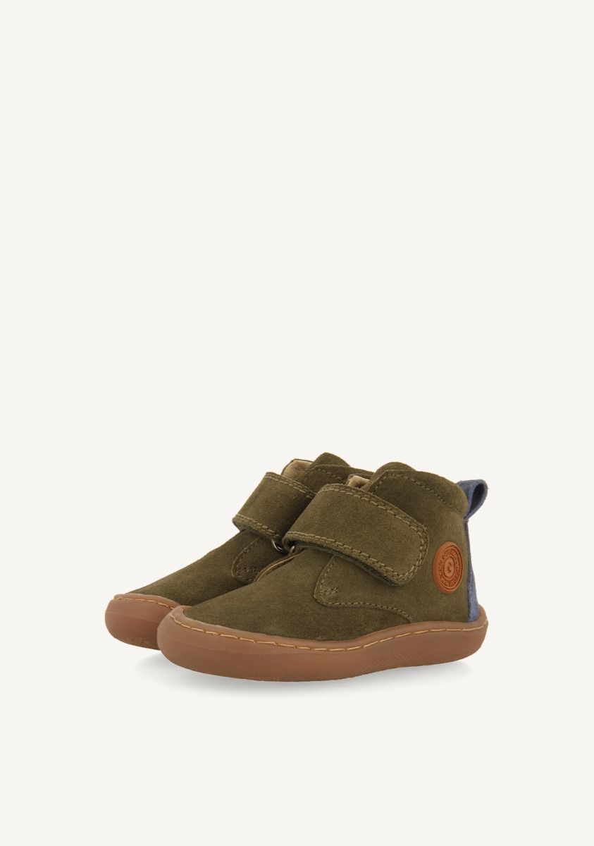Introducimos Gioseppo Barefoot, una innovadora y respetuosa línea de calzado para sus primeros pasos. Botines color kaki con cierres ajustables sin elementos anatómicos que puedan obstaculizar el desarrollo óptimo del pie. Cuentan con piso flexible y plantilla extraíble de carbón activo para mejorar la transpirabilidad y combatir las bacterias y los malos olores. El forro y la plantilla están hechos de piel curtida en tenerías que siguen un protocolo más sostenible, de acuerdo con los estándares de Leather Working Group (LWG). Descubre la nueva línea de calzado que estimula las experiencias sensoriales. Flexible y torsionable. Sin refuerzos. Piel suave. Suela fina y receptiva. Plantilla extrraíble de piel y carbón activo. Puntera amplia. Sin desnivel (drop cero).