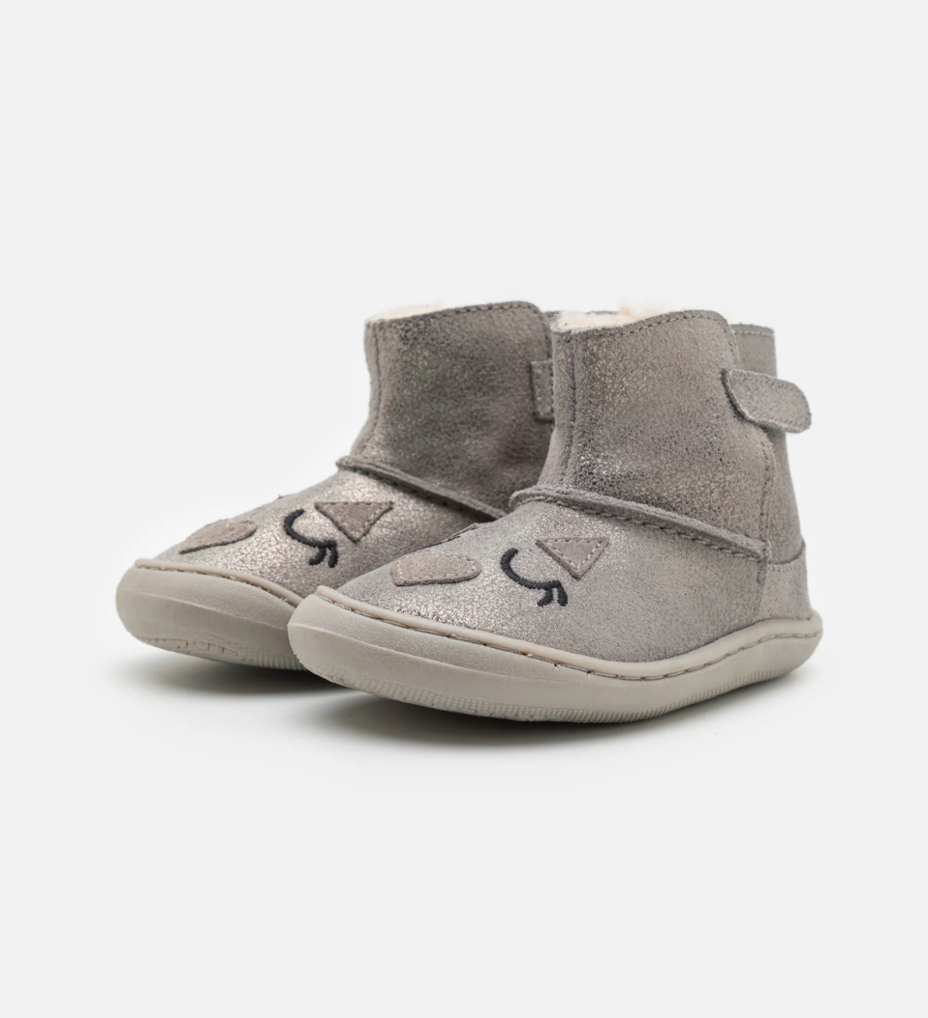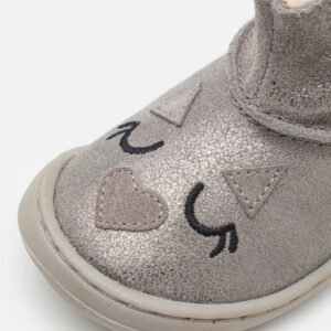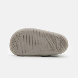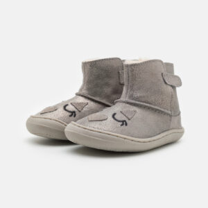 Gioseppo Barefoot: el calzado que redefinirá sus primeros pasos. Botines grises con bordado y cierres ajustables sin elementos anatómicos que puedan obstaculizar el desarrollo óptimo del pie. Cuentan con piso flexible y plantilla extraíble de carbón activo para mejorar la transpirabilidad y combatir las bacterias y los malos olores. El forro y la plantilla están hechos de piel curtida en tenerías que siguen un protocolo más sostenible, de acuerdo con los estándares de Leather Working Group (LWG). Descubre la nueva línea de calzado que estimula las experiencias sensoriales. Flexible y torsionable. Sin refuerzos. Piel suave. Suela fina y receptiva. Plantilla extrraíble de piel y carbón activo. Puntera amplia. Sin desnivel (drop cero).