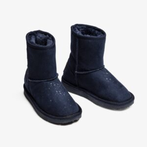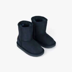 Botas australianas para los más peques en color azul marino fabricado con la tecnlogía water repellent en material repelente al agua, haciendo que el agua quede en el exterior y no se filtre hacia el interior de la bota. Tiene el forro interior de pelo, con detalle en el talón de etiqueta de Osito by Conguitos y suela de goma. Unas botas totalmente unisex perfectas para los días de más frío y e incluso de lluvia del invierno.