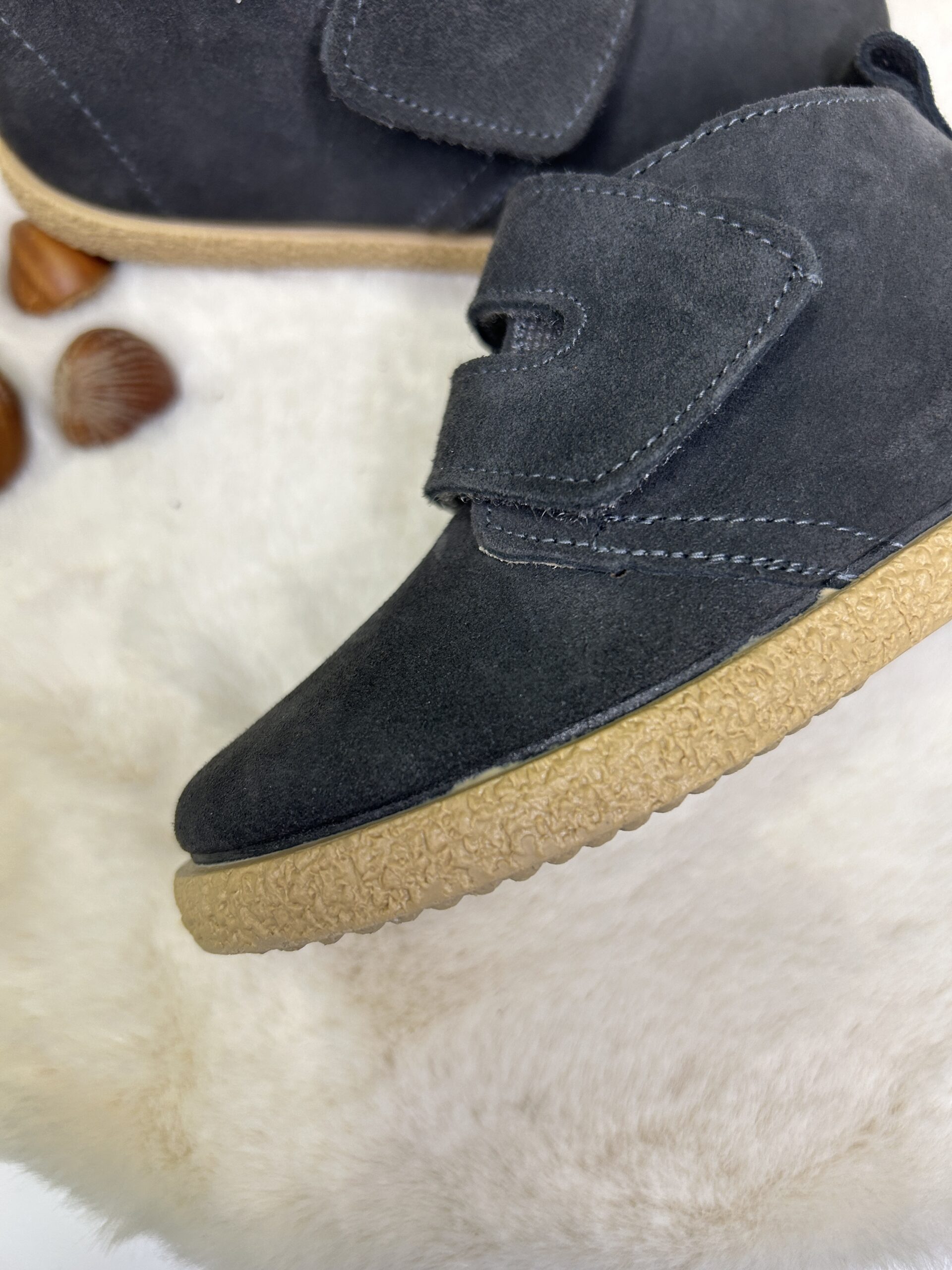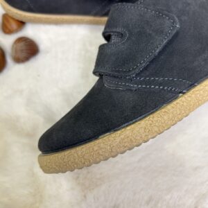 Botas infantiles de serraje ideales para otoño y entretiempo, tanto para uso diario como para ocasiones especiales. Están fabricadas con materiales de la mejor calidad y su tacto es suave y agradable para la mayor comodidad de los más pequeños. Estas botitas tienen la suela de goma para garantizar una pisada segura y evitar resbalones sobre superficies mojadas o resbaladizas. Además, se cierran con una tira ancha adherente, que facilita que los niños puedan calzarse y quitarse los zapatos solos.