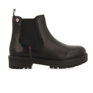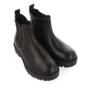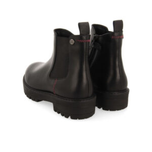 ¡Un básico que no se pueden perder! Botines tipo Chelsea color negro de piel con elástico. Detalles de zigzag en color fucsia. Suela negra tipo track que aporta un look urbano. Cremallera interior y tirador para facilitar el calce. Planta fabricada con fibras naturales. Forro con materiales reciclados. Plantilla muy acolchada en látex para un mayor confort. Forro y planta de piel curtidos en tenerías que siguen un proceso de curtición más sostenible bajo los estándares de Leather Working Group.