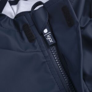 Viste a tu hijos para los días de lluvia con este elegante chubasquero para niñ@s ¡que es toda una monada! Un chubasquero 100% impermeable, mantiene la funcionalidad de un chubasquero gracias a su exterior de PU, el clásico estilo marinero, con detalle de rayas en el interior de la capucha y en el remangado de los puños 100% algodón, protección debajo de la barbilla para evitar pellizcos, también tiene bolsillos laterales con solapa y cierre de velcro. Con este chubasquero los peques irán protegidos del agua, el frÍo y el viento durante la temporada otoño-invierno.