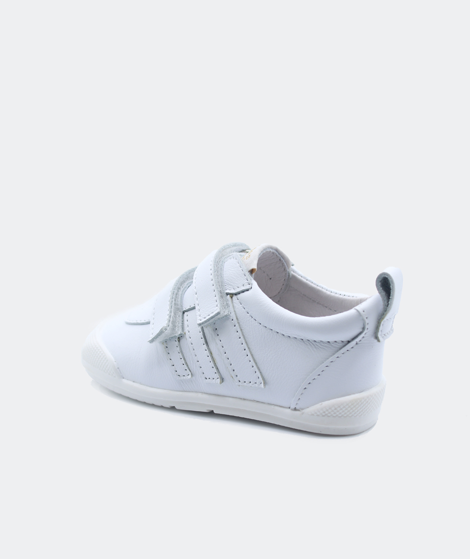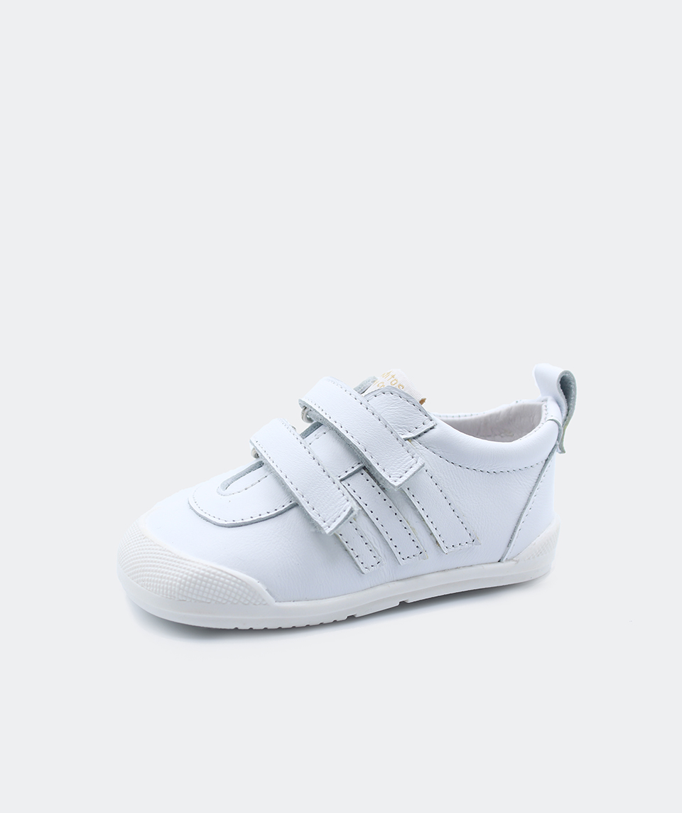 Están compuestas por sistema de cierre de doble velcro y suela de goma antideslizante en color blanco. Plantilla en piel extraíble.