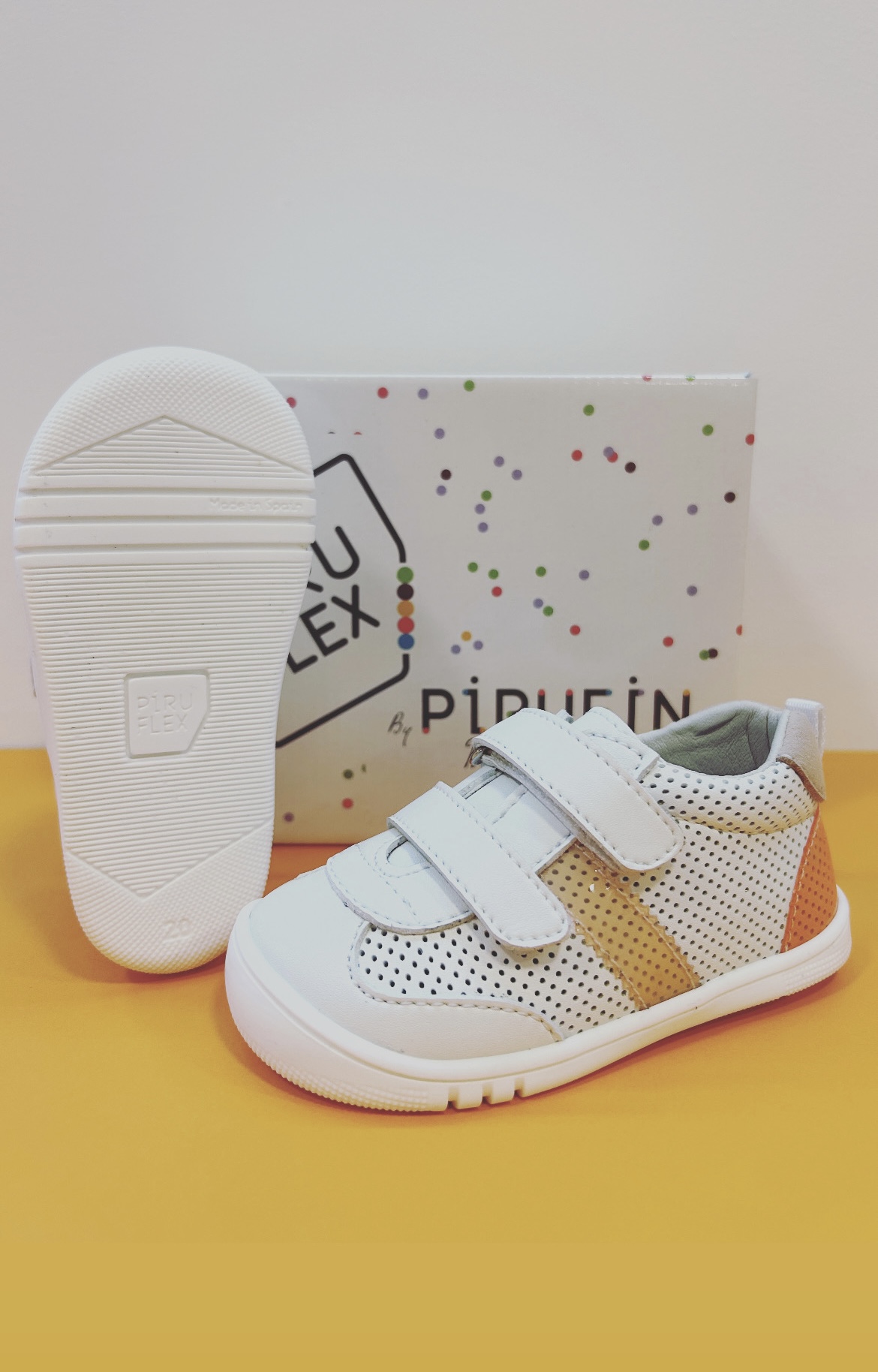 Llega la nueva temporada de Piruflex con este modelo vegano y una suela completamente renovada. Este modelo lleva un calado de puntitos, perforado totalmente por la puntera y forrado hasta mitad de zapato, (en las tallas de la 20 a la 26) y forro completo (en las tallas de la 27 a la 29) ideal para transpirar en los meses más cálidos.Detalles en vinilo y talonera en diferentes tonos de color naranja.
