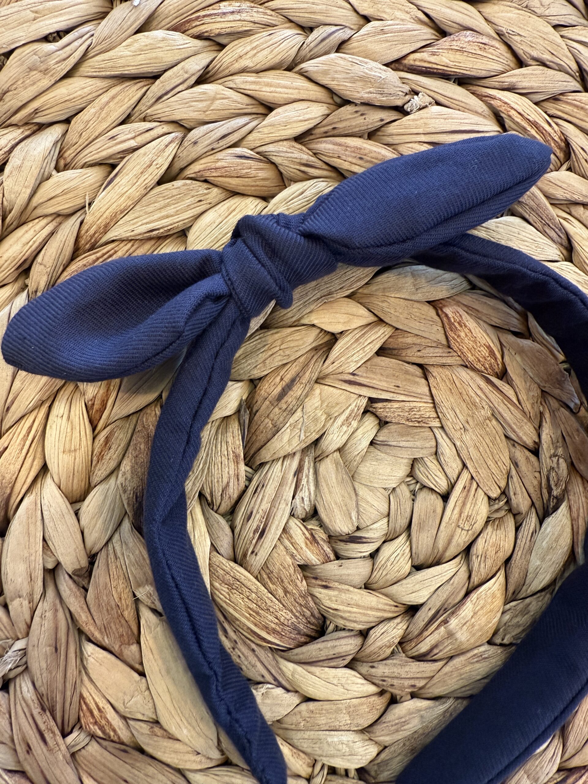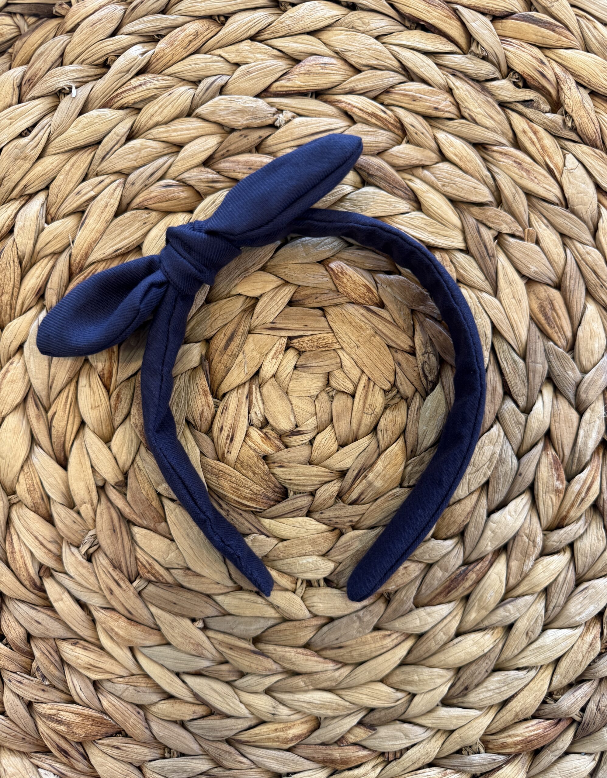 Diadema de niña en tela de algodón lisa color marino, con el detalle del lazo en un lateral , super favorecedora, muy cómoda, no aprieta. Un color que nunca desaparece y puedes hacer conjuntazos porque el complemento es imprescindible para darle ese toque especial a cualquier look.