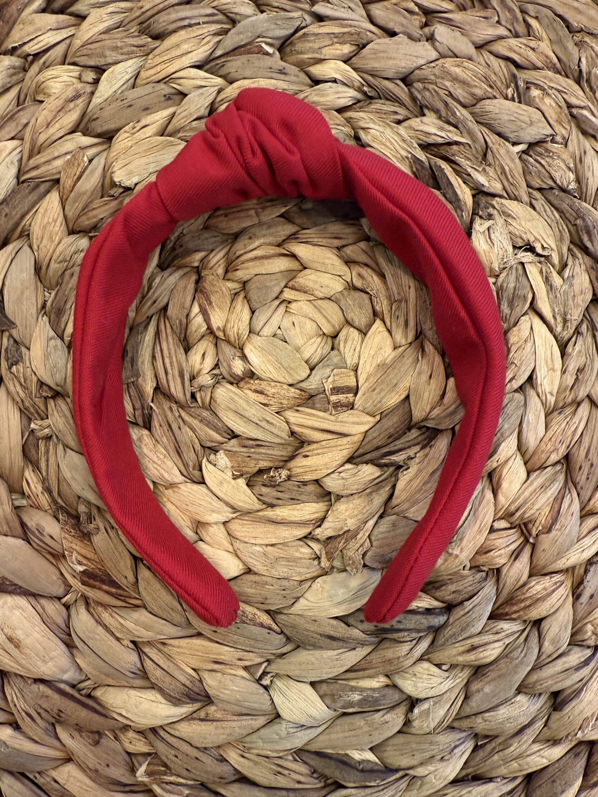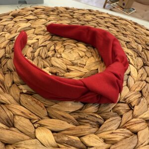 Diadema de niña en tela de algodón, suave, color rojo, con el detalle del nudo en el centro , super favorecedora, muy cómoda, no aprieta. Un color que nunca pasa de moda y sirve tanto para invierno como para verano y puedes hacer conjuntazos porque el complemento es imprescindible para darle ese toque especial a cualquier look.