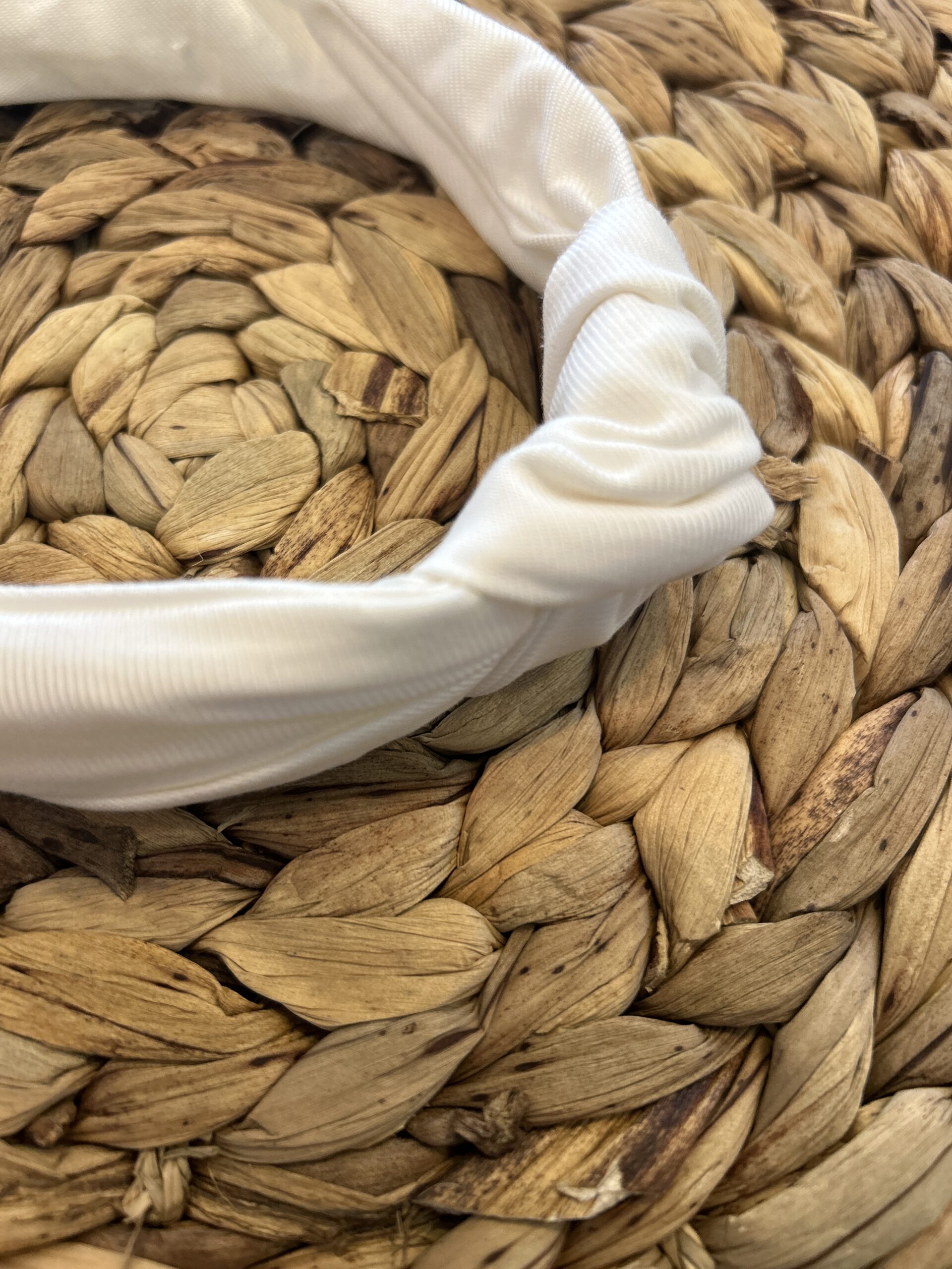 Diadema de niña en tela de gasa, suave, color blanco, con el detalle del nudo en el centro , super favorecedora, muy cómoda, no aprieta. Un color que nunca pasa de moda y sirve tanto para invierno como para verano y puedes hacer conjuntazos porque el complemento es imprescindible para darle ese toque especial a cualquier look.