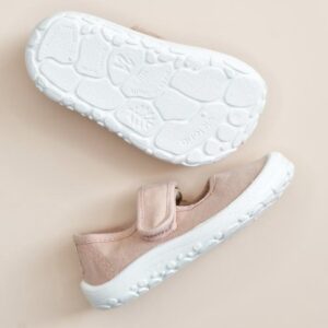 Sin contrafuerte, favoreciendo el desarrollo natural del pie.