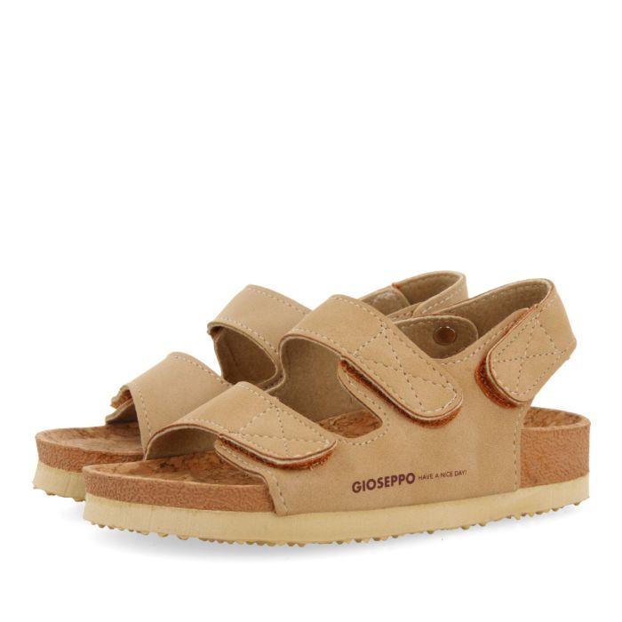 Sandalia de la marca Gioseppo en color taupe. Triple cierre mediante tiras con velcro que proprocionan una sujeción total. Plantilla de microfibra anatómica. Suela tipo BIO y piso en EVA muy ligero