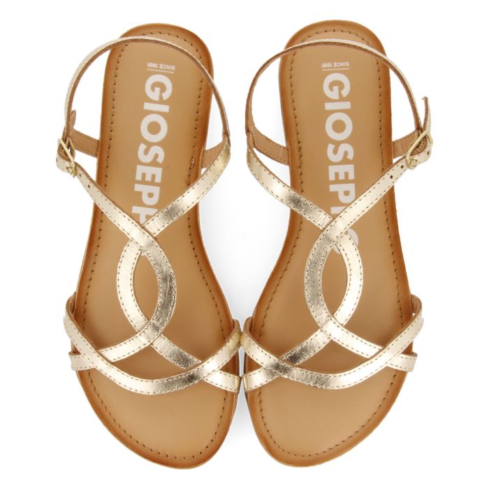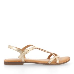 ¡Las más cómodas del verano! Sandalias de tiras finas en piel color dorado. Cierre al tobillo con hebilla. Plantilla de piel con acolchado de látex de suave tacto para garantizar un mayor confort. Plantilla de piel curtida en tenerías que siguen un protocolo de curtición más sostenible bajo los estándares Leather Working Group. Piso flexible. Un básico que no pasa de moda temporada tras temporada.