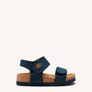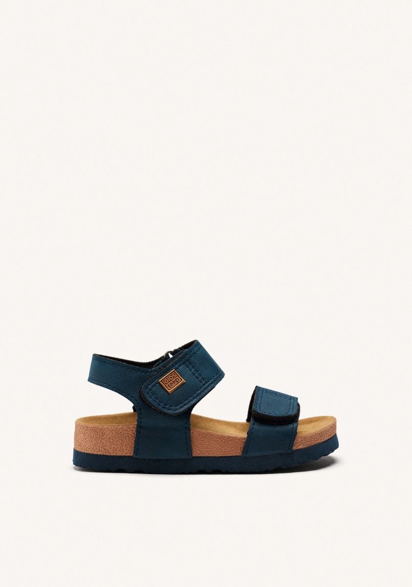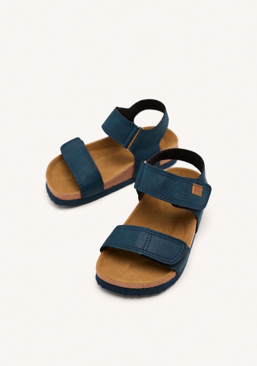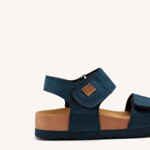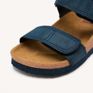 Unas sandalias efecto cuero con suela bio resistente al agua, con plantilla ergonómica diseñada siguiendo la horma natural del pie, para reforzar cada pisada y potenciar un correcto desarrollo . Cierre con velcro al tobillo, ajustable para un mejor calce.Puedes encontrar este calzado de verano en dos tonos, marrón clarito y azul marino.