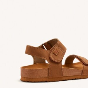 Unas sandalias efecto cuero con suela bio resistente al agua, con plantilla ergonómica diseñada siguiendo la horma natural del pie, para reforzar cada pisada y potenciar un correcto desarrollo durante los primeros años de crecimiento de tu pequeño. Cierre con velcro al tobillo, ajustable para un mejor calce.Puedes encontrar este calzado de verano en dos tonos, marrón clarito y azul marino.