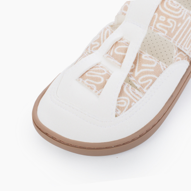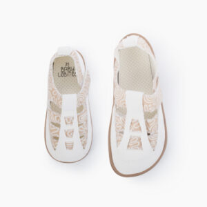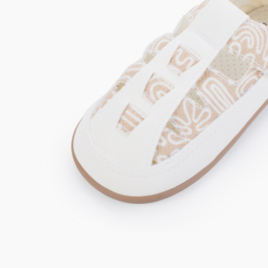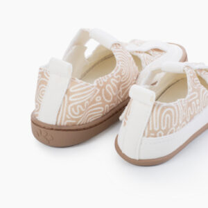 Color tierra y blanco con suela toffee.- Simula los dibujos en la arena.