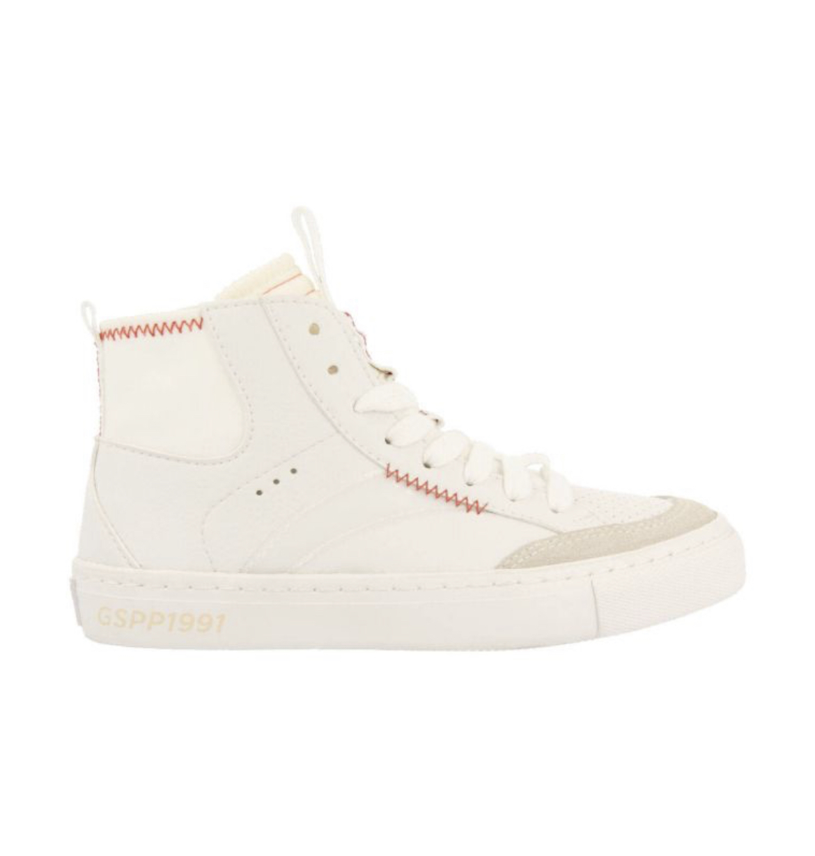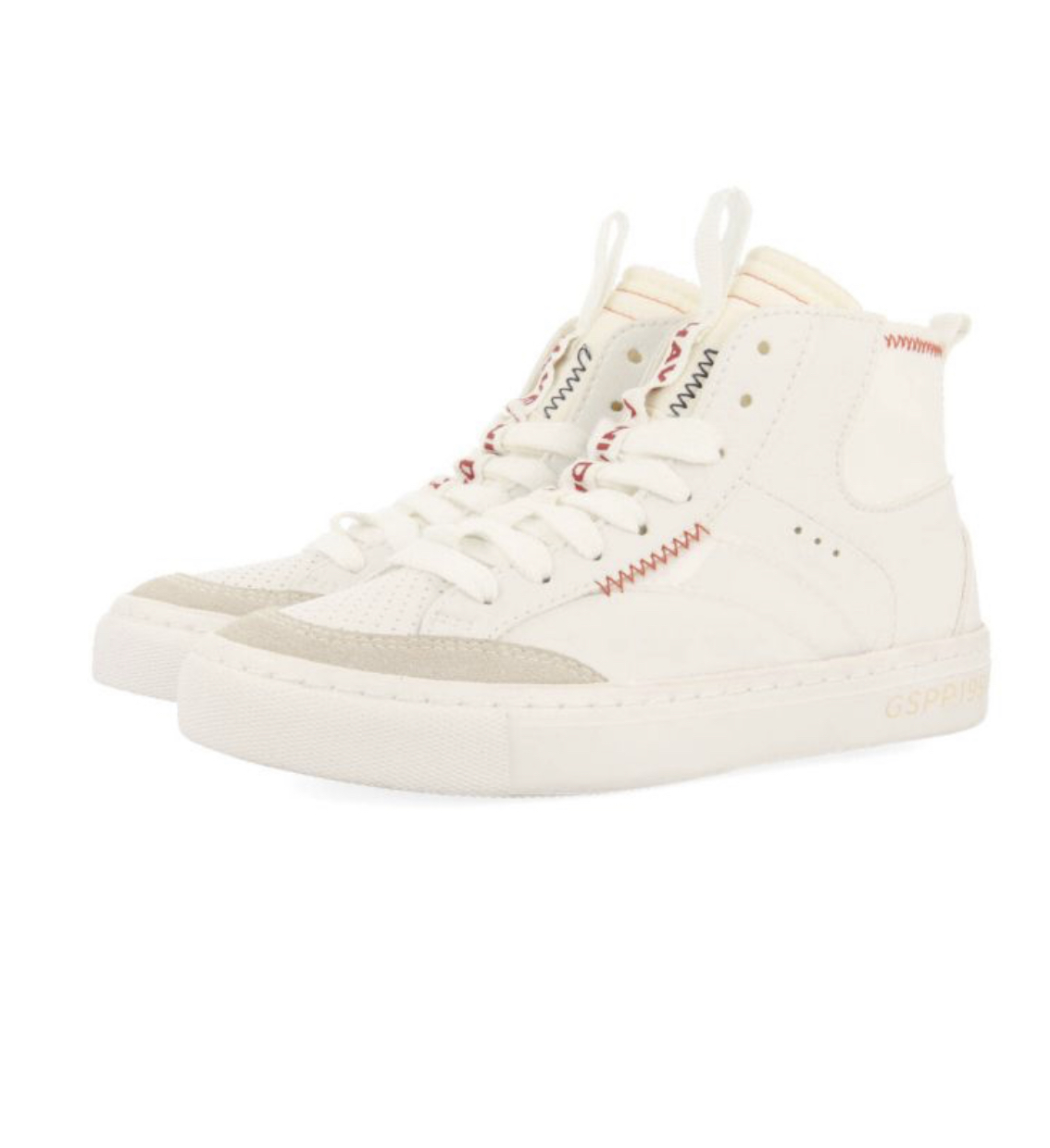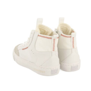 ¡No te los puedes perder! Sneakers tipo botín blancas de estilo retro con acentos en naranja y detalles de zigzag en contraste. Cierre con cremallera interior para facilitar el calce. Plantilla Gio Memory Effect, un novedoso sistema efecto memoria que suaviza la pisada, ofreciendo un mayor confort. Forro y plantilla transpirables de material reciclado. Suela flexible.